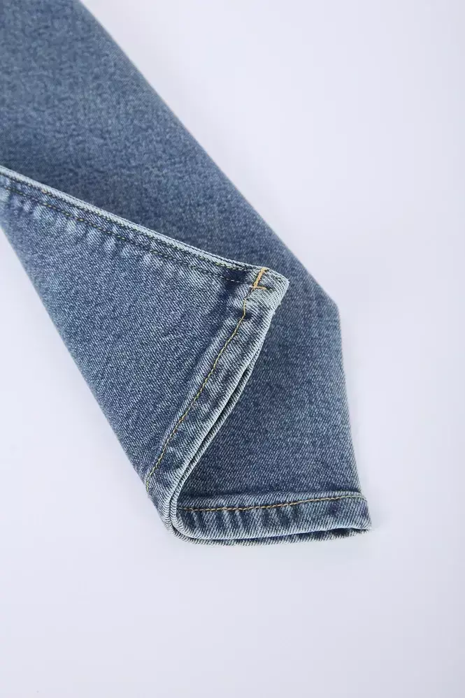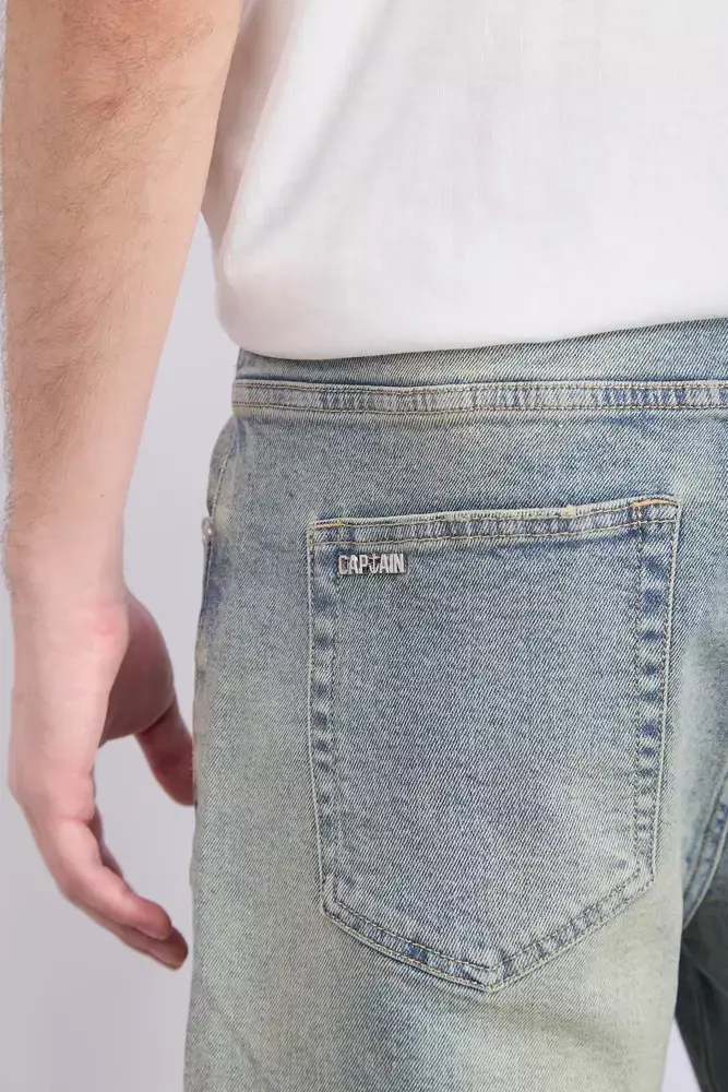BERMUDA DE JEAN COMPOSICIÓN 99% ALGODÓN 1% ELASTANO CON ACCESO DE CIERRE Y BOTÓN PRINCIPAL PERSONALIZADO DE MARCA, APLIQUES METALICOS CUSTOMIZADOS. LOGO EN METAL EN BOLSILLO TRASERO Y BADANA DE CUERO EN CINTURA.