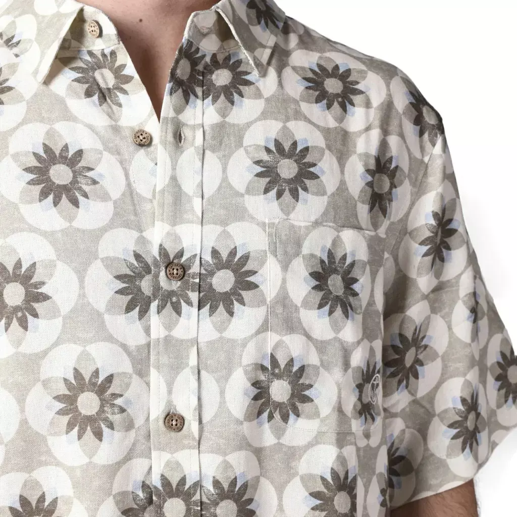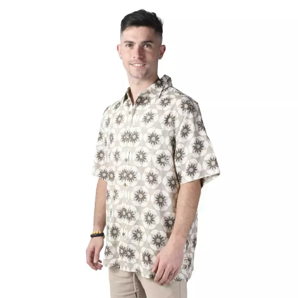 CAMISA FULL PRINT DE LINO COMPOSICIÓN: 30% LINO - 70% RAYON. BOTONES DE COCO PERSONALIZADOS, BOLSILLO CON BORDADO EN DELANTERO Y ETIQUETA TEJIDA DE MARCA EN LA COSTURA LATERAL.