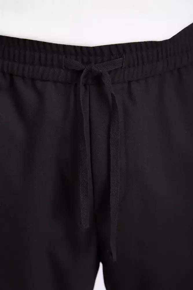 JOGGER DE VESTIR CONFECCIONADO EN TEXTIL COMPOSICIÓN: 64% POLIESTER - 33% VISCOSA - 3% ELASTANO. CON DETALLE DE PLANCHADO CENTRAL, CINTURA ELÁSTICA Y REGULABLE CON CORDÓN. BOLSILLOS LATERALES DELANTEROS Y BOLSILLOS OJAL EN ESPALDA. AVIOS PERSONALIZADOS Y ETIQUETAS TEJIDAS.
