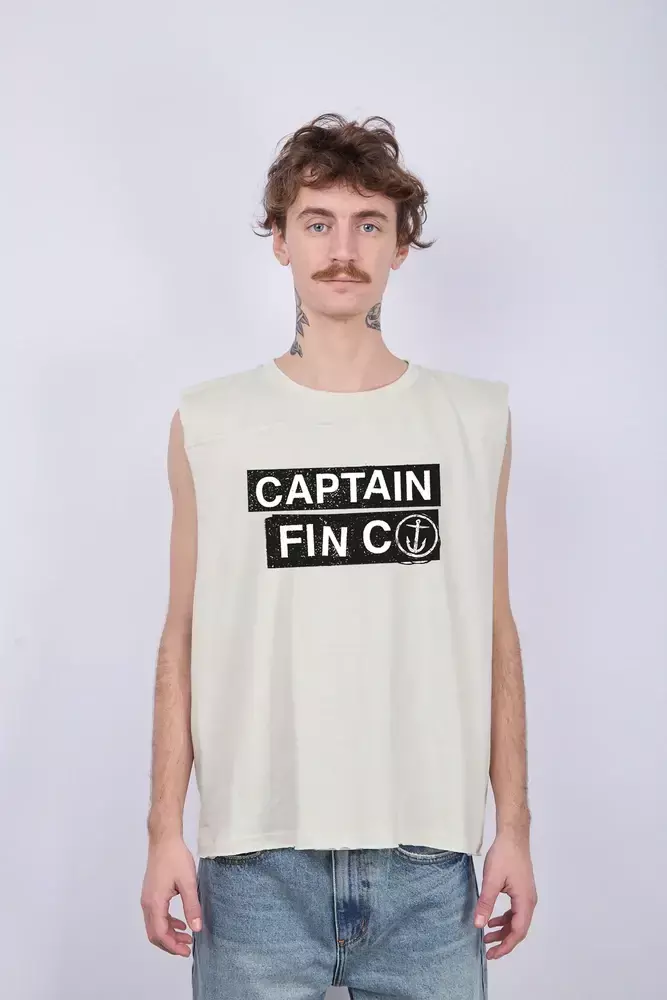 REMERA SIN MANGAS CON RECORTE SUPERIOR EN DELANTERO Y ESPALDA, CONFECCIONADA EN JERSEY 24/1 100% ALGODÓN, SISAS AL CORTE Y RUEDO DIFERENCIADO. ESTAMPA EN TACTO CERO EN DELANTERO.