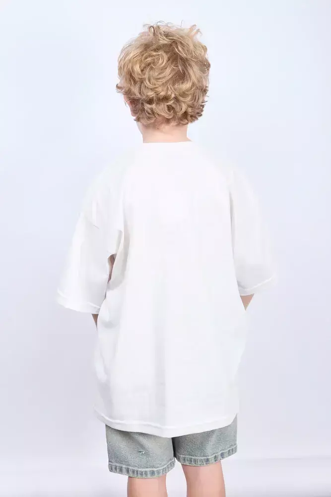 REMERA MANGAS CORTAS OVERSIZE FIT CONFECCIONADA EN JERSEY 16/1 CON ESTAMPA TACTO CERO EN DELANTERO. 100% ALGODÓN.