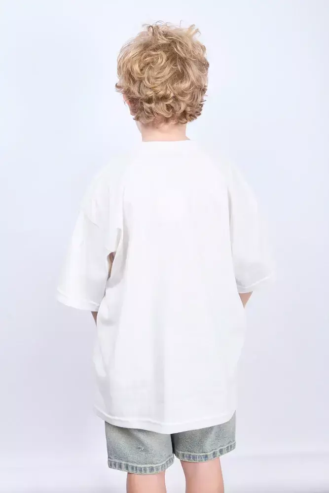REMERA MANGAS CORTAS OVERSIZE FIT CONFECCIONADA EN JERSEY 16/1 CON ESTAMPA TACTO CERO EN DELANTERO. 100% ALGODÓN.