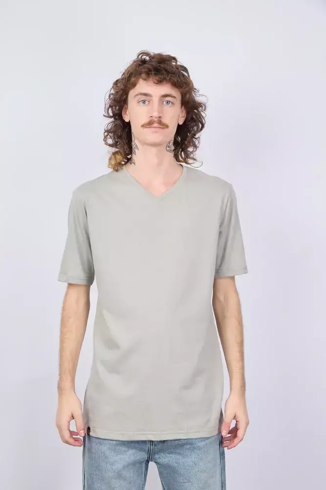 REMERA MANGA CORTA STANDARD FIT ESCOTE EN V CONFECCIONADA EN JERSEY 24/1 100% ALGODÓN.
