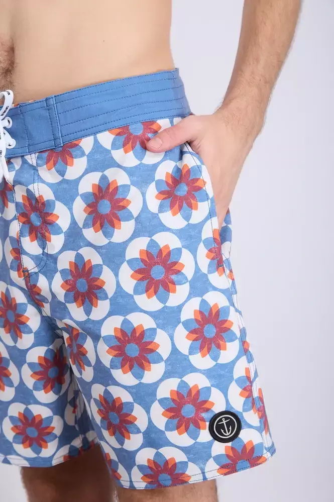 BOARDSHORT FULL PRINT DE 18" COMPOSICIÓN 70% POLIESTER - 22% ALGODÓN - 8% ELASTANO. CINTURA FIJA REGULABLE CON CORDÓN PERSONALIZADO, BOLSILLOS LATERALES Y BOLSILLO TRASERO TIPO PLAQUÉ CON SOLAPA, VELCRO Y CORDÓN DE SEGURIDAD, ETIQUETA TEJIDA EN BOLSILLO TRASERO Y PARCHE FESTONEADO EN LATERAL DE PIERNA DELANTERA.