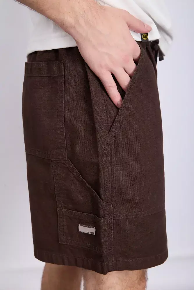 BERMUDA CARPINTERA COMPOSICIÓN 100% ALGODÓN CON CINTURA ELASTIZADA REGULABLE CON CORDÓN Y ACCESO CON CIERRE Y BOTÓN PERSONALIZADO. BOLSILLOS LATERALES TIPO CARPINTERO Y BOLSILLOS PLAQUÉ EN ESPALDA. BORDADO AL TONO EN PIERNA Y ETIQUETA TEJIDA PISADA POR UN BORDADO EN BOLSILLO CARPINTERO LATERAL.